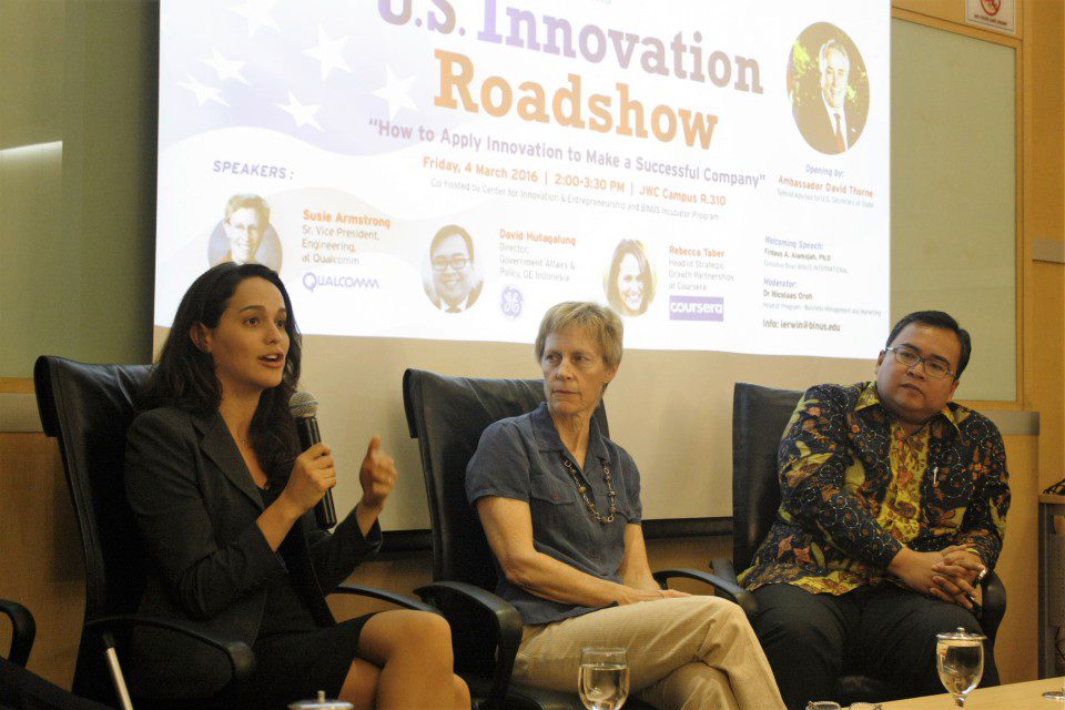 JWC – The springing up of many digital start-up business fuelled by global venture firms’ fund indicates economy’s direction to the future. Innovation and internet (internet-based firms) become chief drivers to the future of economic growth. The issue was brought up at the U.S. Innovation Roadshow seminar, on the subject of “How to Apply Innovation to Make a Successful Company”, held Friday (4/3) in JWC Campus.