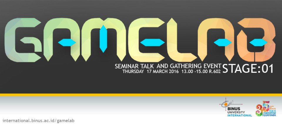 STAGE stands for Seminar, Talk, and Gathering Event. It is one of the series of activities conducted by Binus University International Game Lab to promote discussions on research and development of games in Indonesia with people from industry, government, academicians, and the community.