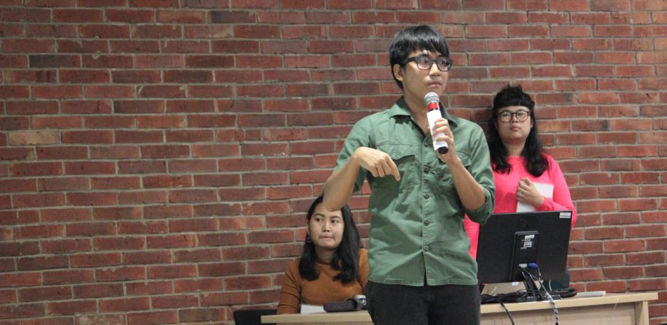 The seven speakers were Nin Djani from Suar Artspace, an institution that is active in the art education field; Atreyu Moniaga, an illustrator who is active in searching for and educating new talents; Wangsit Firmantika, whose artworks are inspired by Japanese culture; Evelyn Huang, an independent curator who became well-known through the exi(s)t exhibition at the National Gallery; Kendra Ahimsa, a graphic designer whose artworks often appear at national and international music scenes; Safrie Effendi, the Art Manager of one of the iconic hotels in Jakarta – ARTOTEL Indonesia; and thepopo, a mural artist whose artworks appear at Ruang Publik Terbuka Ramah Anak Kalijodo.
