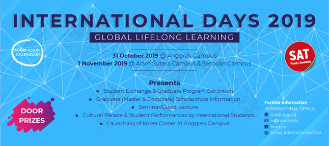 BINUS UNIVERSITY is proudly presents INTERNATIONAL DAYS 2019.