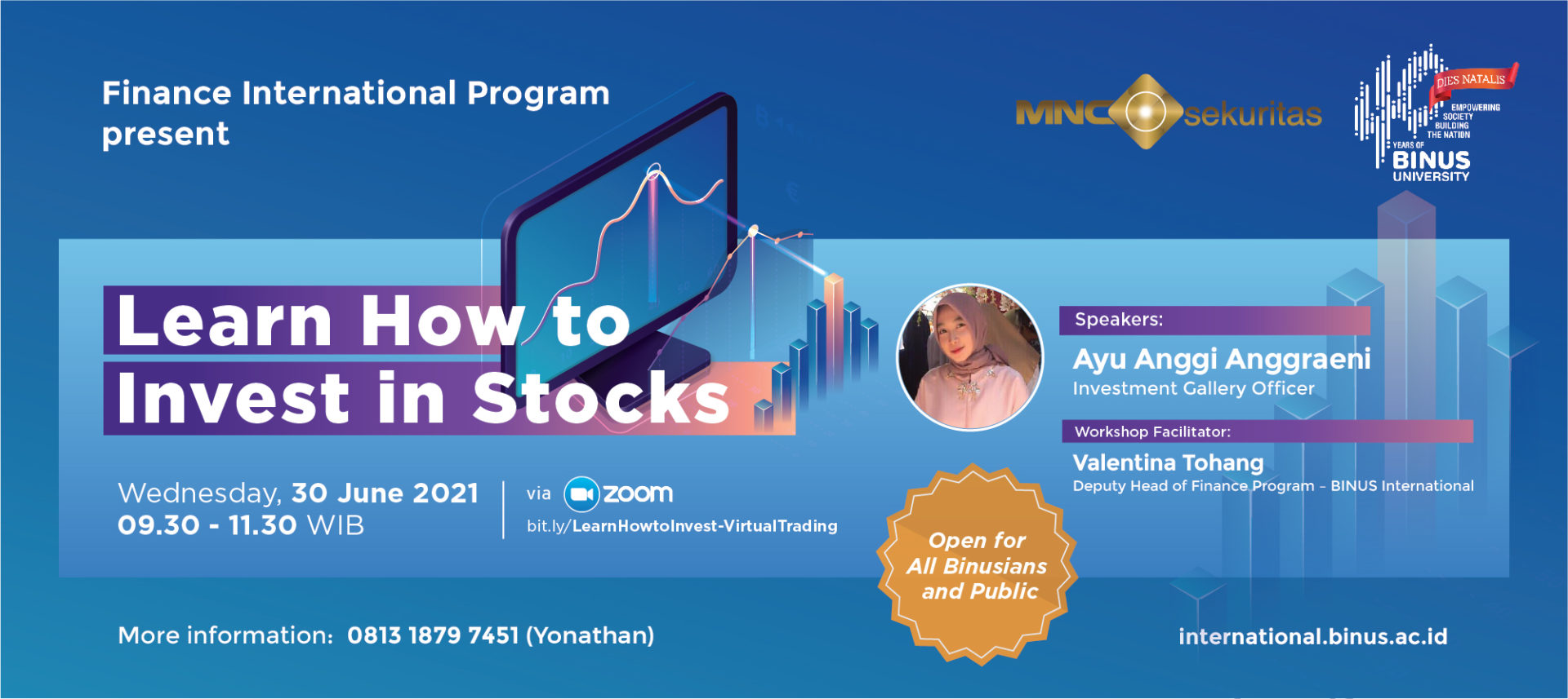 The Finance Program at BINUS International presents the “Learn How to Invest in Stocks” webinar.
