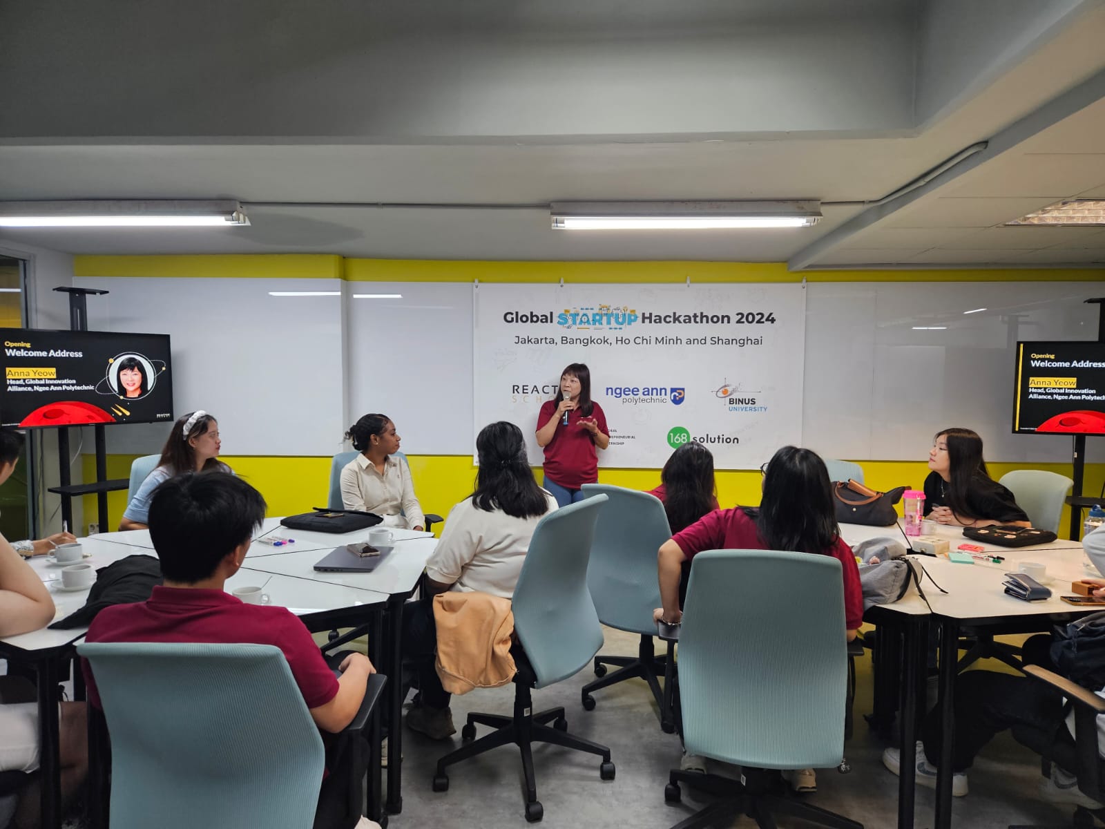 Jakarta, 9 March 2024 – BINUS University International, Ngee Ann Polytechnic Singapore, and Reactor School proudly organized the Global Startup Hackathon, a three-day cross-border program designed to provide aspiring young entrepreneurs with the opportunity to kick-start their startup ideas while working collaboratively with like-minded individuals from around the globe. Held on March 9th, 10th, and 16th, 2024, the hackathon brought together students from various Institutes of Higher Learning across Indonesia, Singapore, China, Thailand, and Vietnam.