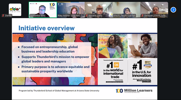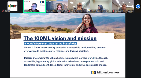 The 100 Million Learners Global Initiative aims to democratize access to world-class entrepreneurship education worldwide. Through this continued collaboration, BINUS University International further strengthens its role as an active partner in delivering globally recognized, accessible, and impactful entrepreneurship education.