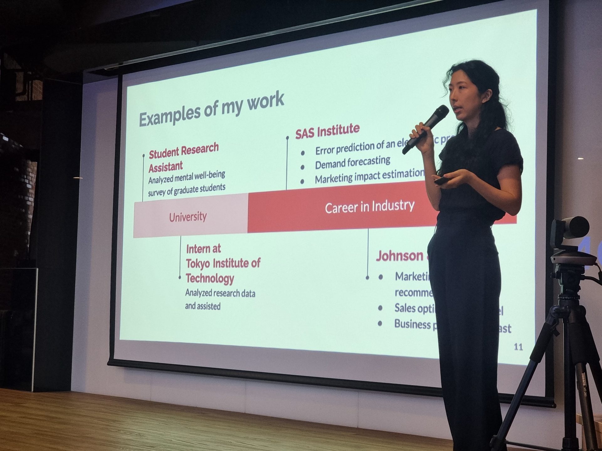 Aimed at computer science students, the event shed light on the real-world applications of data science in global business environments. Yuka Ogino shared her extensive experience in leading analytics teams across different regions and emphasized the growing importance of data-driven decision-making in multinational corporations.