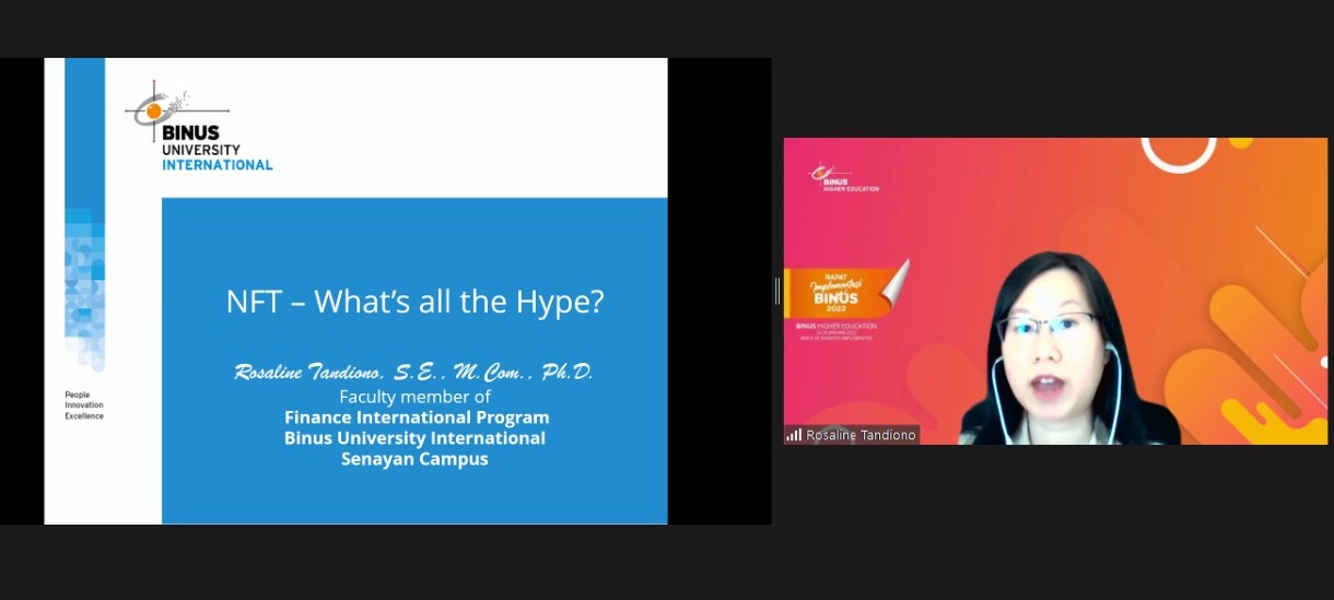 On 3 February 2022, our program took part in Binus Education Virtual Expo event, which was conducted at JCC on a hybrid basis. One of our faculty members, Rosaline Tandiono, PhD. delivered a very interesting webinar titled NFT – What’s All the Hype? Points discussed where: