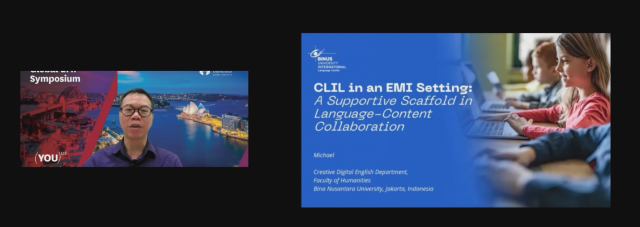 On October 23, 2025, Michael Setiawan from Binus University, Indonesia, joined an international lineup of experts and practitioners at Macquarie University’s Global Symposium – Collaborations in EMI. The online symposium provided a valuable platform to deepen understanding and build capacity in the increasingly significant field of English as a Medium of Instruction (EMI).